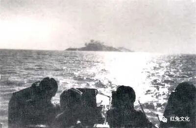 12时15分,登陆输送队第一、二梯队70余艘登陆艇,满载5000多名指战员,在空中、地面、海上火力掩护下快速驶向开展区。